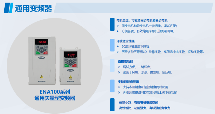 先后推出EN550EN655、EN650B、ESS200N四款全新系列產(chǎn)品榮獲”2019年度用戶滿意品牌”、“中國產(chǎn)品節(jié)能產(chǎn)品技術獎”