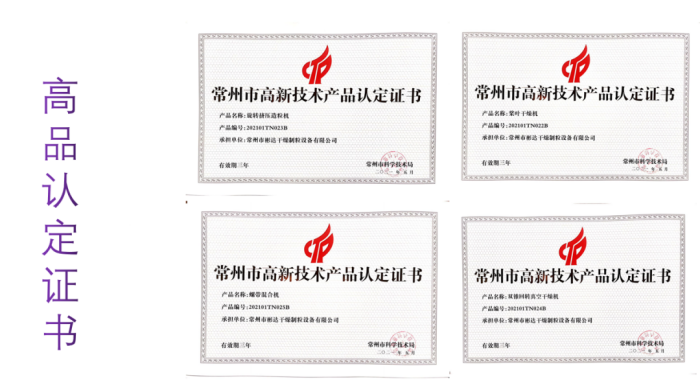 常州市彬達干燥制粒設備有限公司的剪折板機、焊機、鉆床、銑床、切割機、激光設備等硬件設施齊全。我廠已榮獲高新技術企業證書(證書編號:GR202232013782);IS09001質量管理體系認證、ISO45001職業健康安全管理體系認證、ISO14001環境管理體系認證、企業AAA信用認證、混合機產品于2012年已通過歐盟CE認證,針對農副產品烘干的新型節能烘箱在2015年已獲得實用型專利,目前我司共獲得專利20件,其中2件為發明專利,另槳葉干燥機、雙錐回轉真空干燥機、螺帶混合機、旋轉擠壓干燥機已獲得高品認定證書;CE認證產品17件,可自營出口,2008年在深圳成立外貿辦事處,2015年在新疆成立辦事處,2019年,與印尼客戶進行合作,開發印尼市場,目前已有多套污泥烘干機在印尼使用。并憑借雄厚的技術實力,成熟的干燥工藝,過硬的產品質量,優質的售后服務,贏得了國內外廣大客戶的信賴和支持。