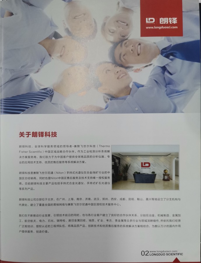 朗鐸科技是賽默飛世爾尼通(Niton)手持式光譜儀在合金/地礦行業的中國區總經銷商,同時也是Niton中國區售后服務及技術支持唯一授權服務商。目前朗鐸科技主要產品包括手持式合金光譜儀、手持式礦石光譜儀等系列產品。